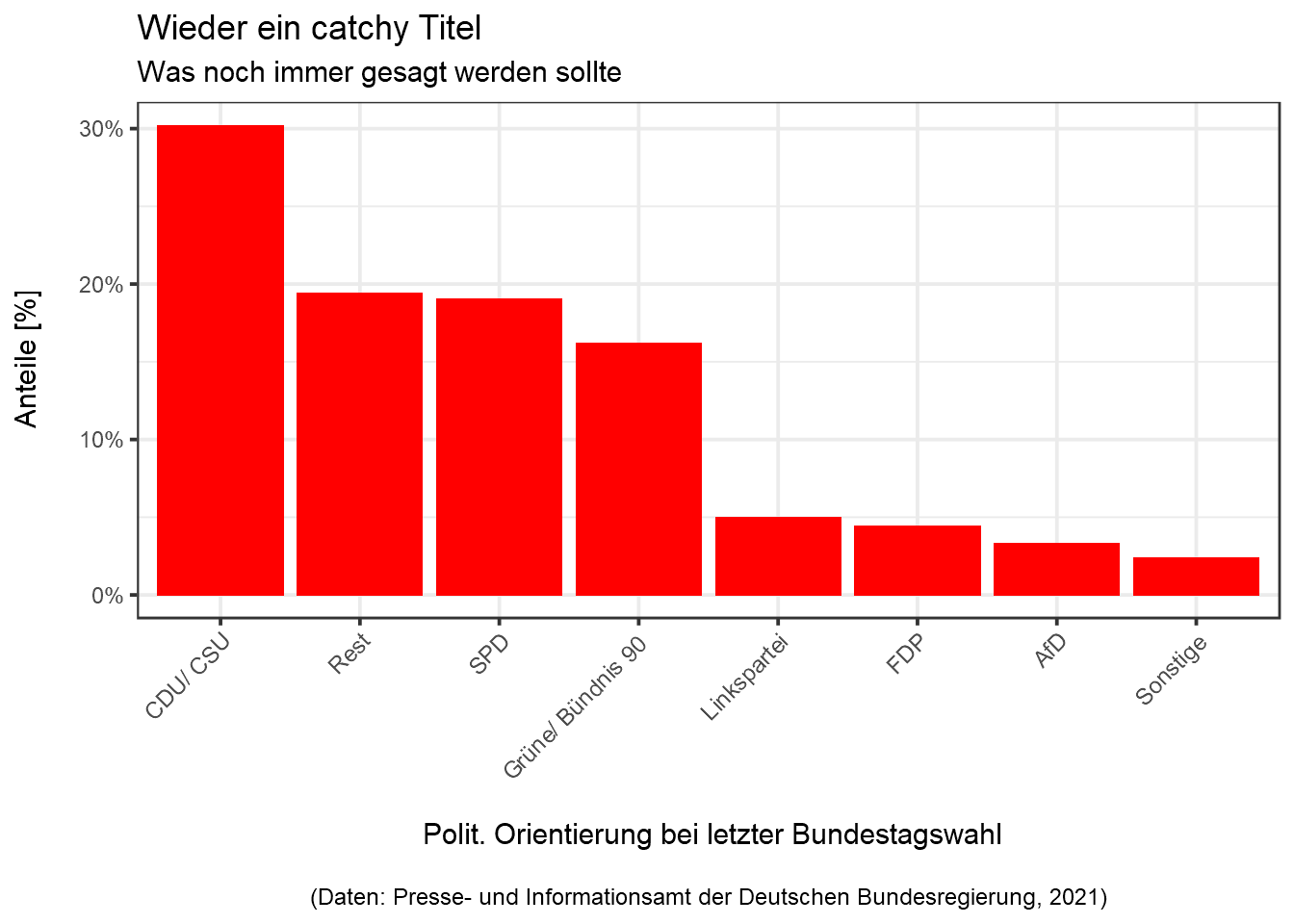 Diese Frage zielt auf das Wahlverhalten der befragten Person der letzten Bundestagswahl ab. Wie genau dieses Wahlverhalten abgefragt wurde ist jedoch nicht dokumentiert 😢.