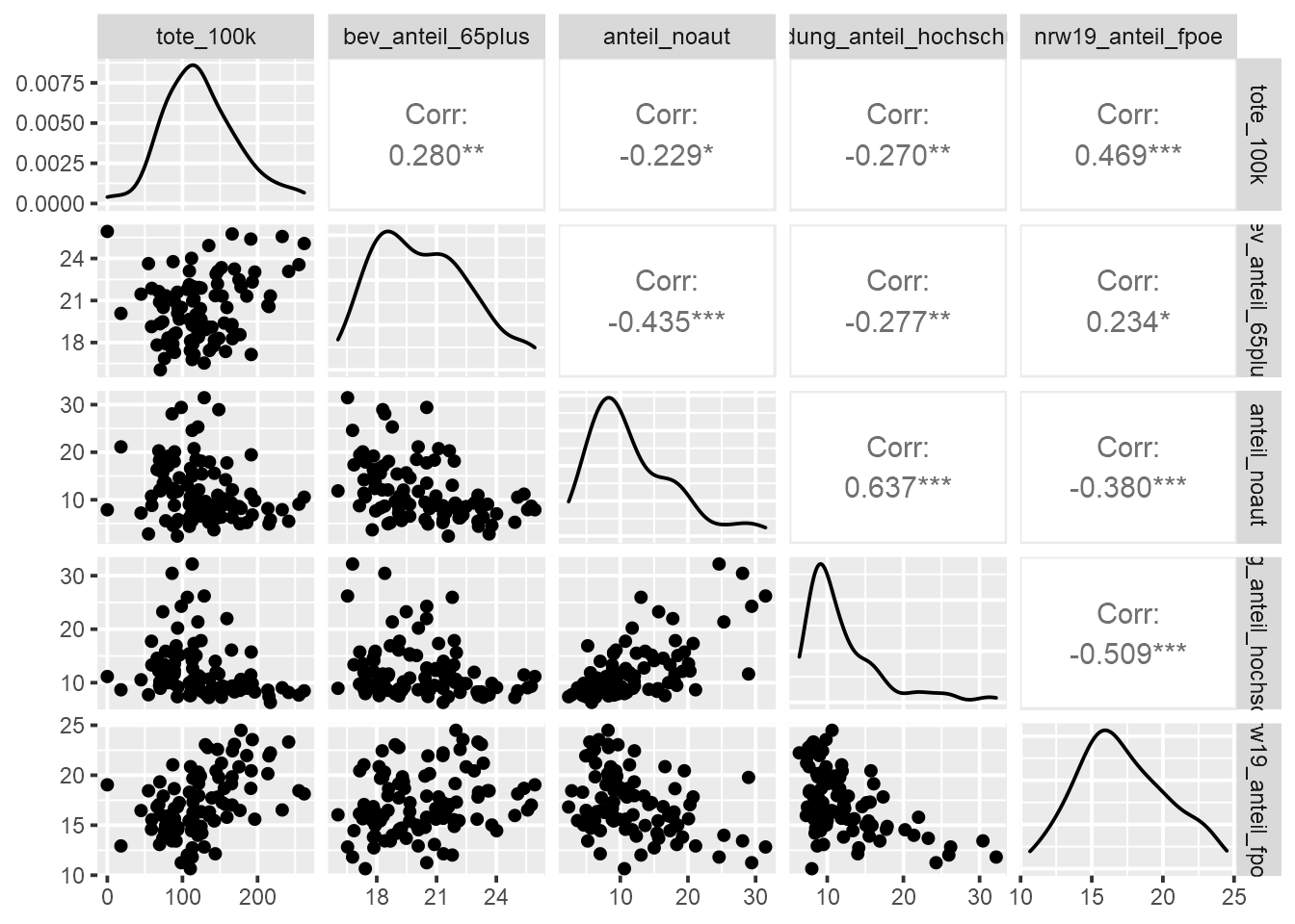 Anhand der bereits bekannten Daumenregel “Keine Korrelation größer als 0,8” können wir keine problematischen Korrelationen feststellen.