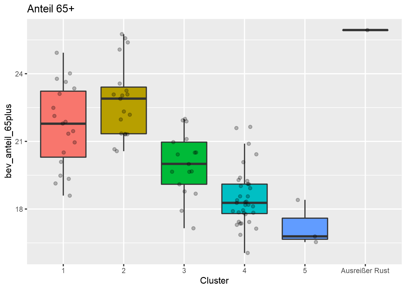 labs(title = "Anteil 65+", x = "Cluster") +