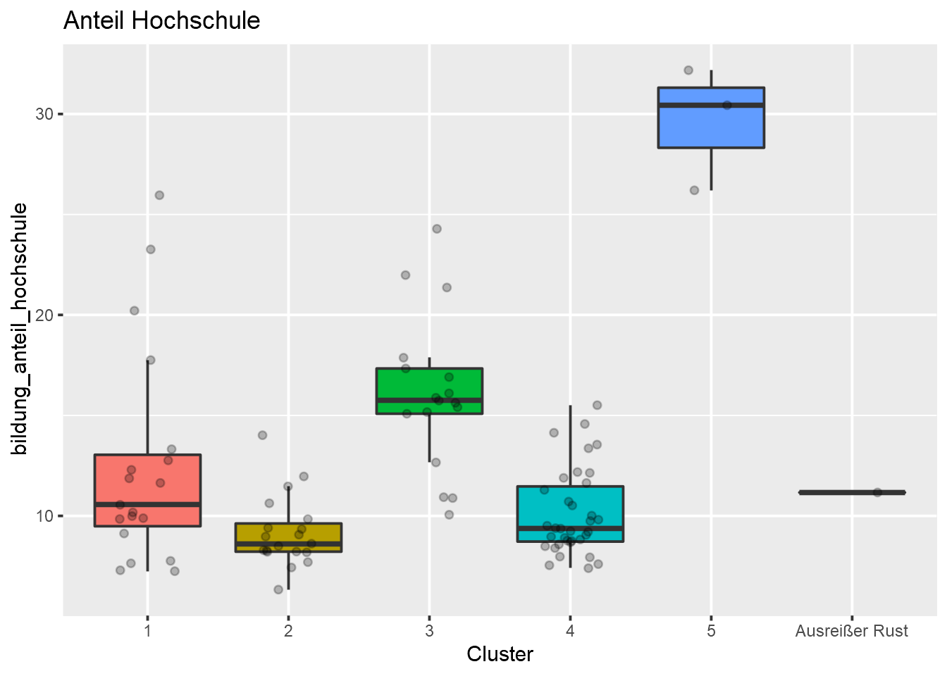labs(title = "Anteil Hochschule", x = "Cluster") +