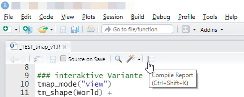 Die wohl einfachste Art ein bestehendes Skript in RStudio mitsamt der darin erzeugten Daten und Abbildungen als Rohbericht abzulegen, bietet die Funktion “Compile Report” in Rstudio: